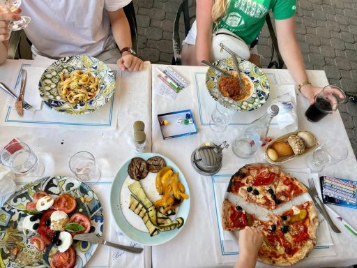 In de commercial zie je een familie samen eten op de pier, en op de achtergrond, achter de pier, is onze flat duidelijk te herkennen. Voor ons een vertrouwd beeld, zo bestellen wij regelmatig een pizza bij de buren en eten die dan samen op op de pier. In de omgeving zijn zeer veel lekkere restaurants waar je kan genieten van de Italiaanse keuken.